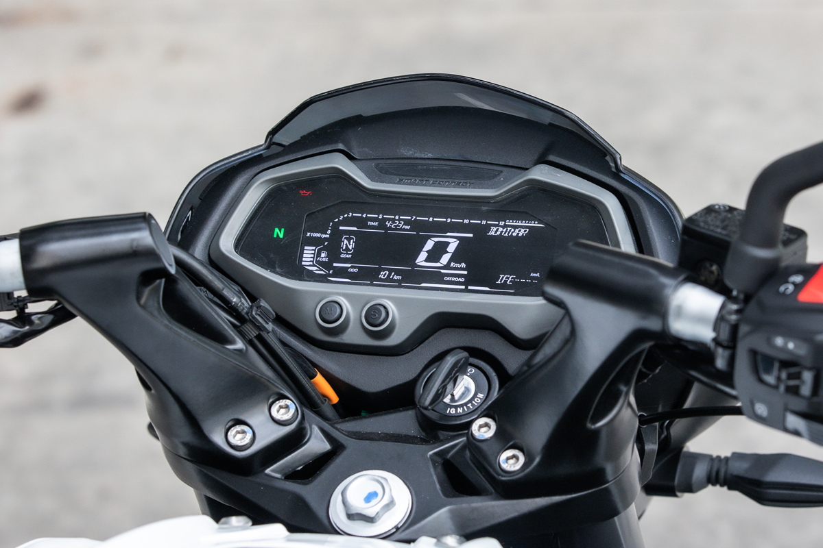 A Dominar NS200 conta com freio ABS de duplo canal, sistema avançado de freios que evita o bloqueio das rodas durante frenagens intensas, assegurando estabilidade e segurança.